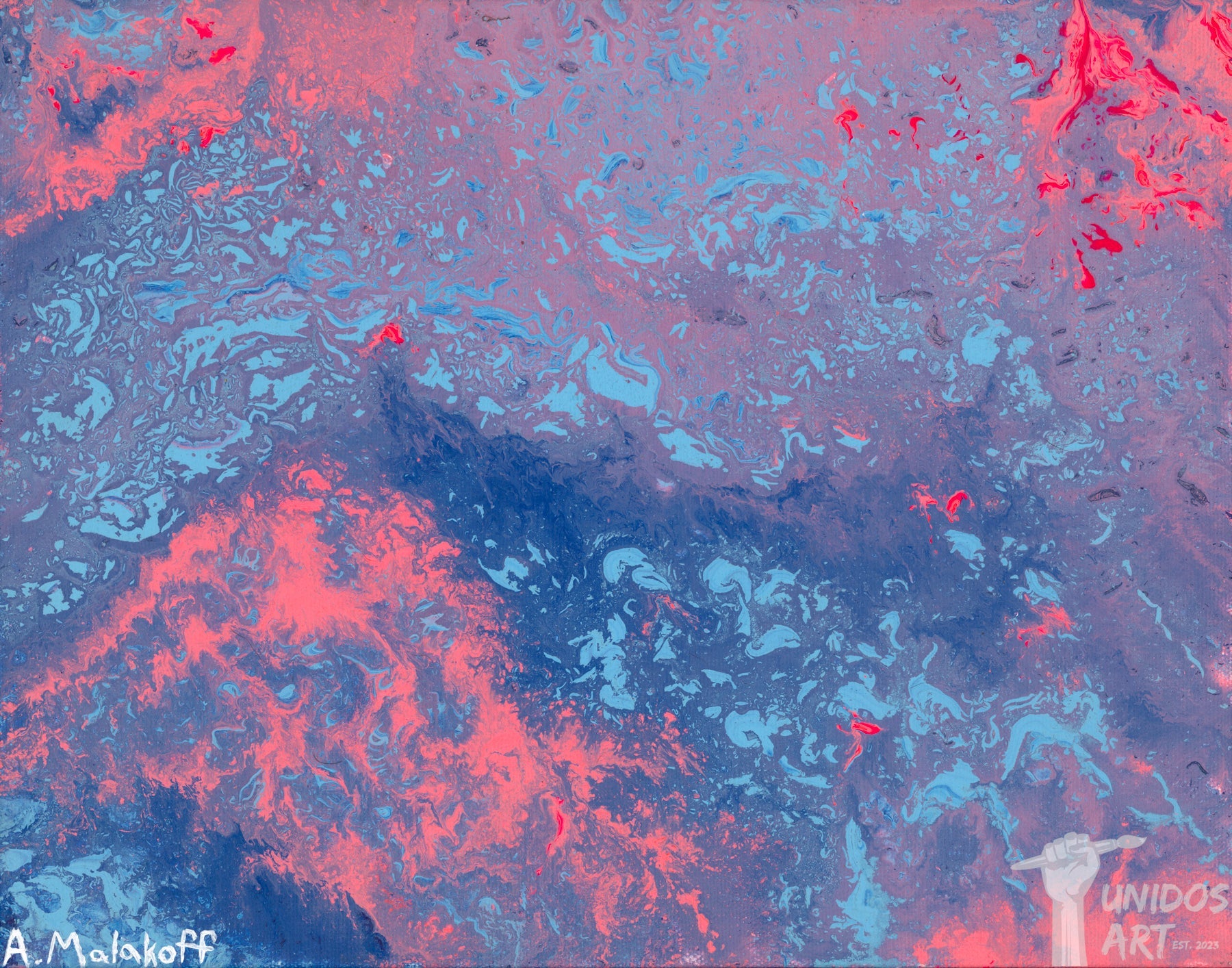 For soft they/thems everywhere. Wheezie Breezy is my memorial for a glass sculpture named Wheezie. I wanted to capture its beautiful sunset-esque colors while mimicking the pattern of wind gusts.